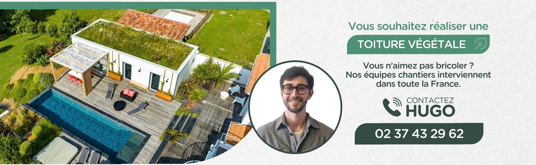 Hugo est là pour vous aider. Il vous accompagne pour la réalisation de votre toiture végétale ou l'aménagement de votre cour.