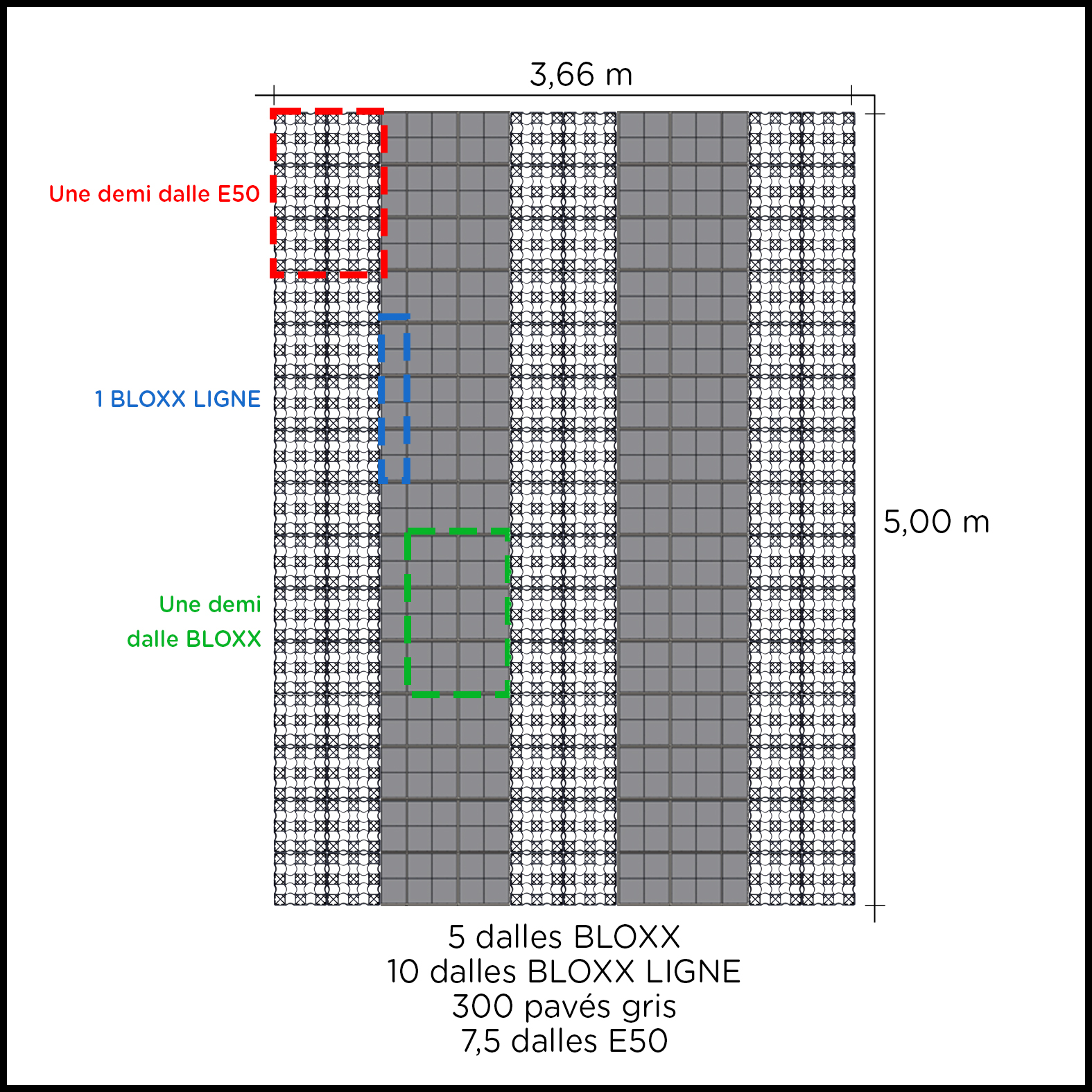 Que ce soit pour une place standard, un SUV ou plusieurs véhicules, nos plans sont adaptés selon le type de produits (dalles perméables, végétalisées ou pavées).